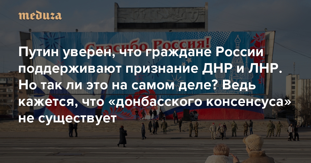 Путин уверен, что граждане России поддерживают признание ДНР и ЛНР. Но так ли это на самом деле? Ведь кажется, что «донбасского консенсуса» нет Интервью директора «Левада-Центра» Дениса Волкова