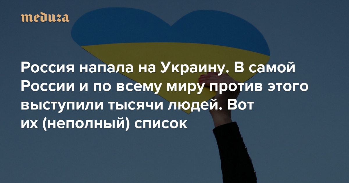24 февраля после начала российского вторжения в Украину мы начали собирать в этом материале заявления известных людей и открытые письма против войны. За несколько дней антивоенное движение стало гораздо более массовым — многотысячные акции против войны проходят по всему миру. Выступления не прекращаются и в России, где протесты фактически запрещены. Число подписей под русскоязычной петицией с требованием прекратить войну превысило миллион. Мы продолжаем собирать в этом материале заявления против войны.