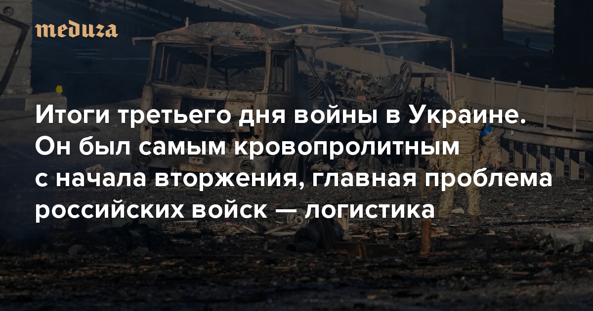 Итоги третьего дня войны в Украине Он был самым кровопролитным с начала вторжения, главная проблема российских войск — логистика
