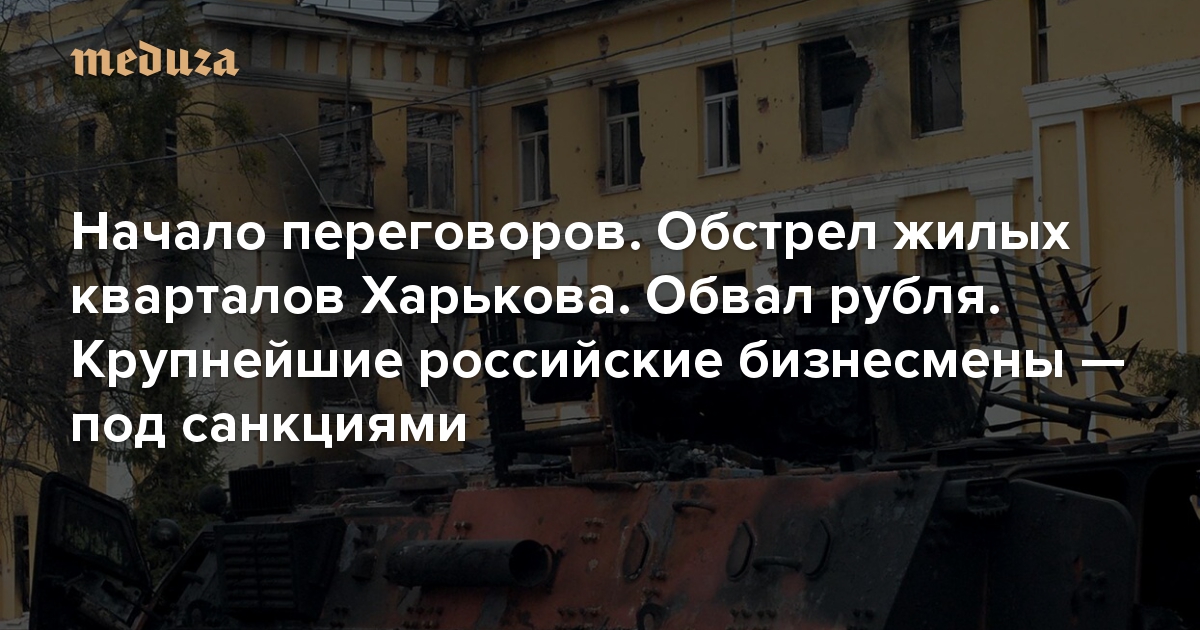 Начало переговоров. Обстрел жилых кварталов Харькова. Обвал рубля. Крупнейшие российские бизнесмены — под санкциями Главные события пятого дня войны