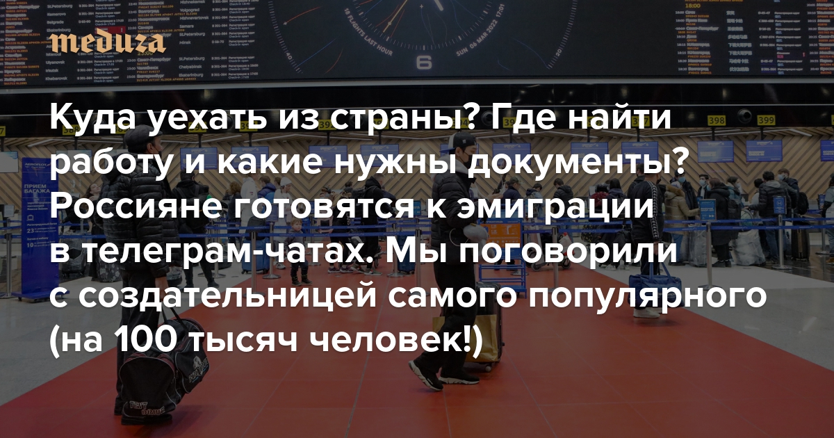 Куда уехать? Какие нужны документы? А где найти работу? Из-за войны россияне бегут за границу — и ищут ответы в чатах об эмиграции. Мы поговорили с создательницей самого популярного из них (на 100 тысяч человек!)
