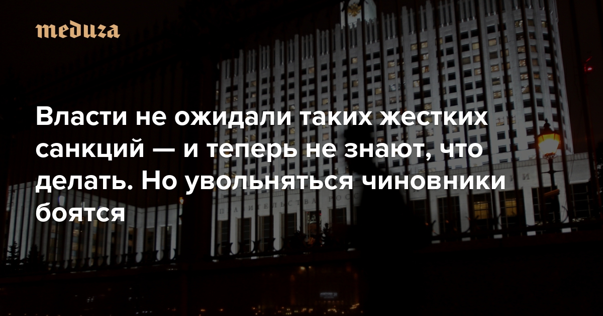 Власти не ожидали таких жестких санкций — и теперь не знают, что делать. Но увольняться чиновники боятся: «Это приравнивается к бегству, а за бегство — расстреливают» Что говорят источники «Медузы»