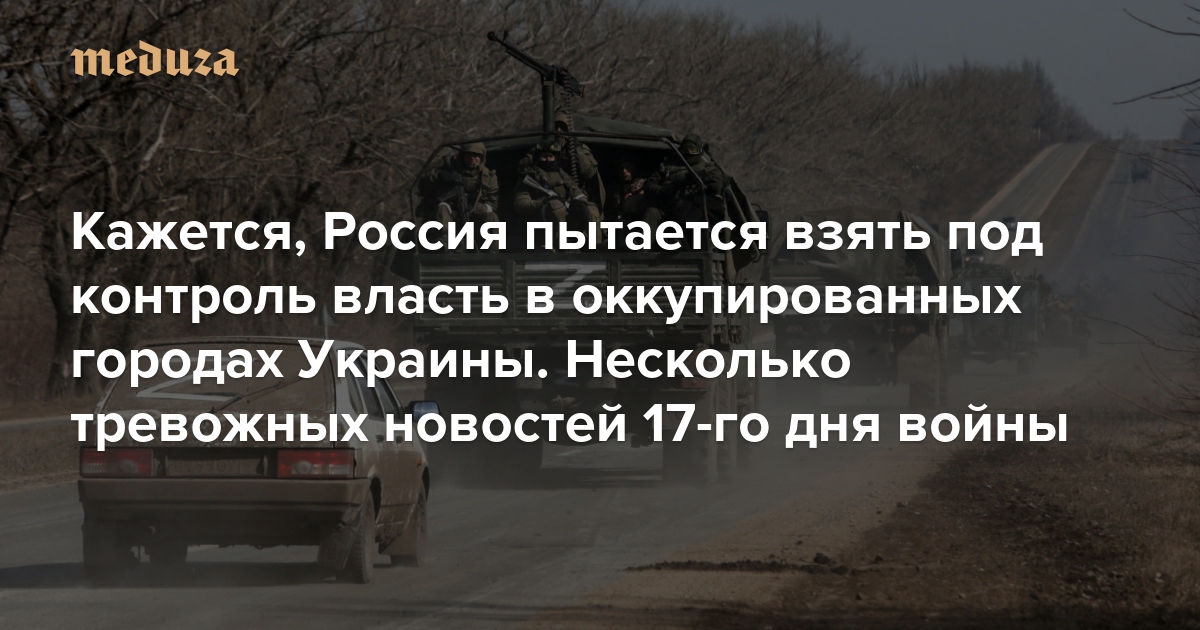 Кажется, Россия пытается взять под контроль власть в оккупированных городах Украины. Несколько тревожных новостей 17-го дня войны В том числе о «Херсонской народной республике»