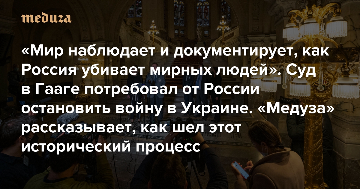 «Мир наблюдает и документирует, как Россия убивает мирных людей» Суд в Гааге потребовал от России остановить войну в Украине. «Медуза» рассказывает, как шел этот исторический процесс