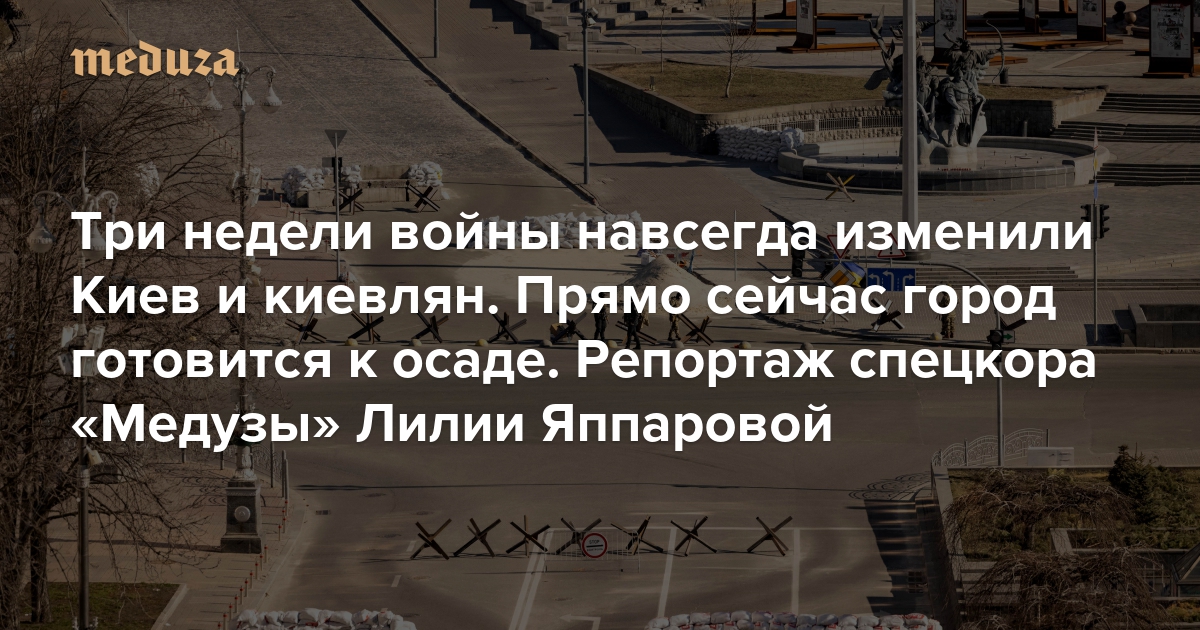Они уже идут Три недели войны навсегда изменили Киев и киевлян. Прямо сейчас город готовится к осаде. Репортаж спецкора «Медузы» Лилии Яппаровой