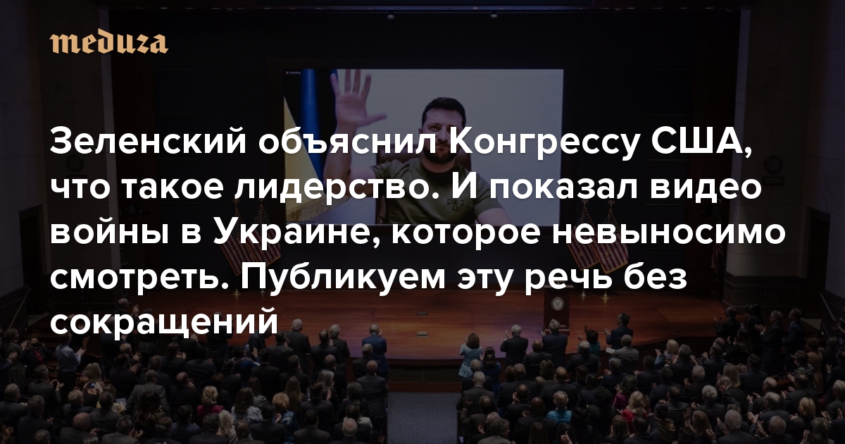 «Я не вижу смысла в жизни, если не могу остановить смерть» Зеленский объяснил Конгрессу США, что такое лидерство. И показал видео войны в Украине, которое невыносимо смотреть. Публикуем эту речь без сокращений