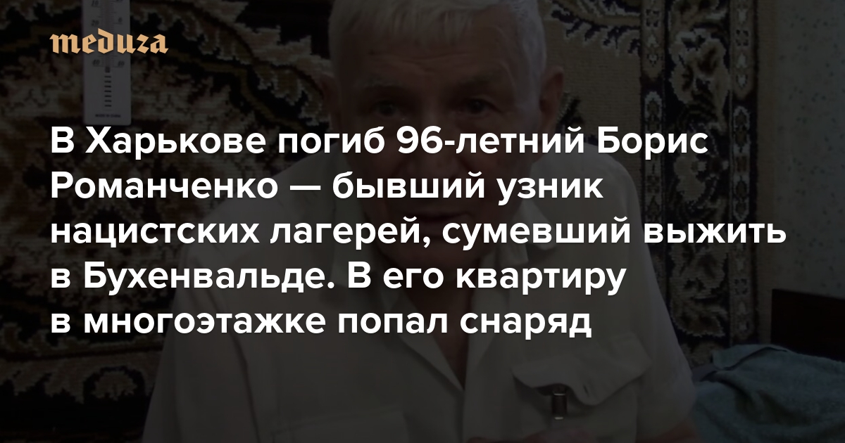 В Харькове погиб 96-летний Борис Романченко — бывший узник нацистских лагерей, сумевший выжить в Бухенвальде В его квартиру в многоэтажке попал снаряд