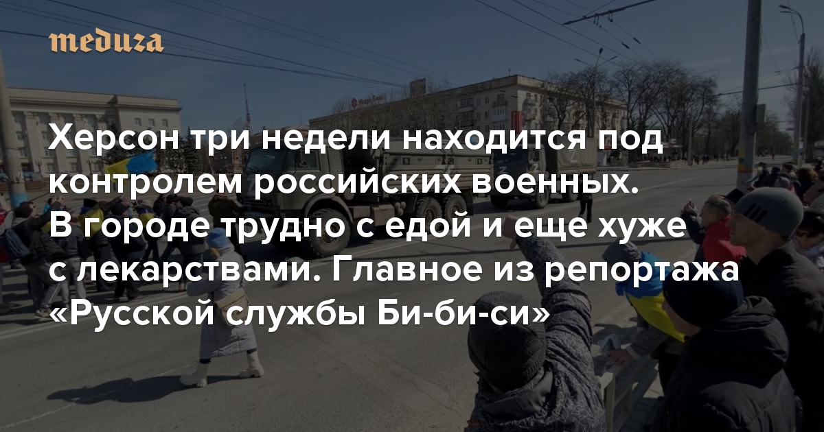Херсон три недели находится под контролем российских военных. В городе трудно с едой и еще хуже с лекарствами. Люди в форме — на каждом шагу Главное из репортажа «Русской службы Би-би-си»