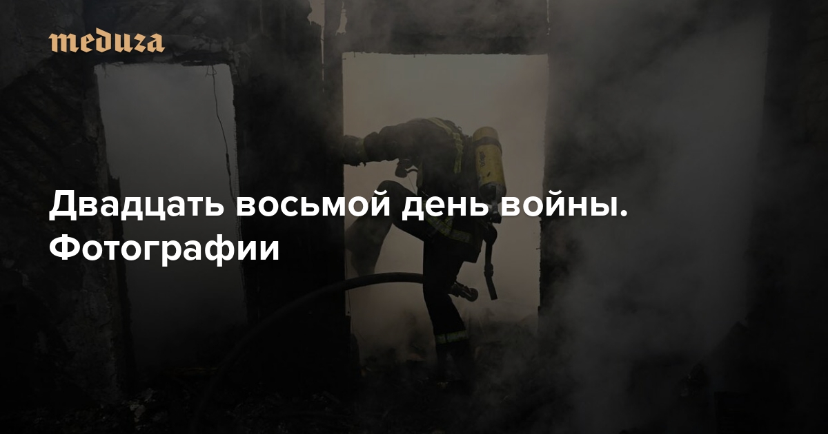 Война в Украине идет уже двадцать восемь дней. Сегодня ночью и ранним утром Киев снова подвергся обстрелам: удары пришлись по жилым домам, пострадали четыре человека. В Мариуполе было уничтожено здание Художественного музея имени Архипа Куинджи, в котором хранились полотна Ивана Айвазовского. В двух селах Белгородской области ввели режим ЧС из-за разорвавшегося снаряда, который, по утверждению российских властей, прилетел со стороны Украины. По словам министра здравоохранения Украины Виктора Ляшко, российские военные обстреляли 58 машин медицинской помощи, погибли шесть медработников. Сегодня стало известно о смерти еще одного журналиста: под обстрелом в Киеве погибла Оксана Баулина из The Insider. Мы собрали главные фотографии этого дня.