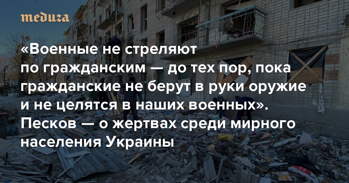 «Военные не стреляют по гражданским — до тех пор, пока гражданские не берут в руки оружие и не целятся в наших военных» Песков — о жертвах среди мирного населения Украины