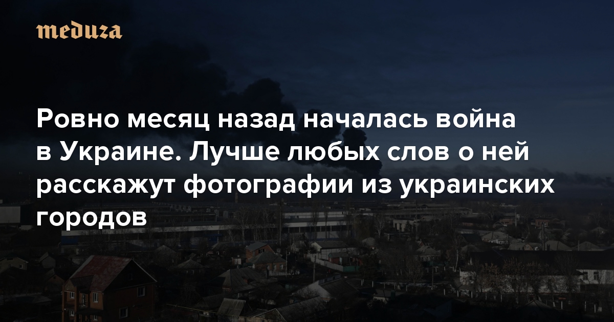 Сегодня, 24 марта, прошел месяц с тех пор, как Владимир Путин ввел российские войска на территорию Украины. Эти четыре недели изменили страну до неузнаваемости: города — от Харькова до Волновахи, от Мариуполя до Херсона — серьезно пострадали от бомбардировок, больше 3,5 миллиона украинцев стали беженцами, по состоянию на 22 марта ООН сообщила о 925 погибших и полутора тысячах раненых гражданских, но и эти цифры могут быть гораздо больше. Достоверно подсчитать потери обеих армий — российской и украинской — пока не представляется возможным. Каким мир запомнит этот катастрофический месяц? «Медуза» решила собрать в одном материале фотографии каждого дня войны в Украине.
