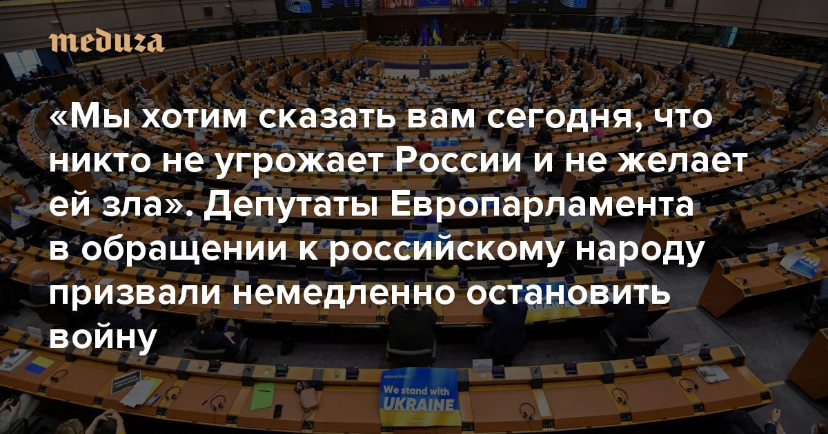 «Мы хотим сказать вам сегодня, что никто не угрожает России и не желает ей зла» Депутаты Европарламента в обращении к российскому народу призвали немедленно остановить войну