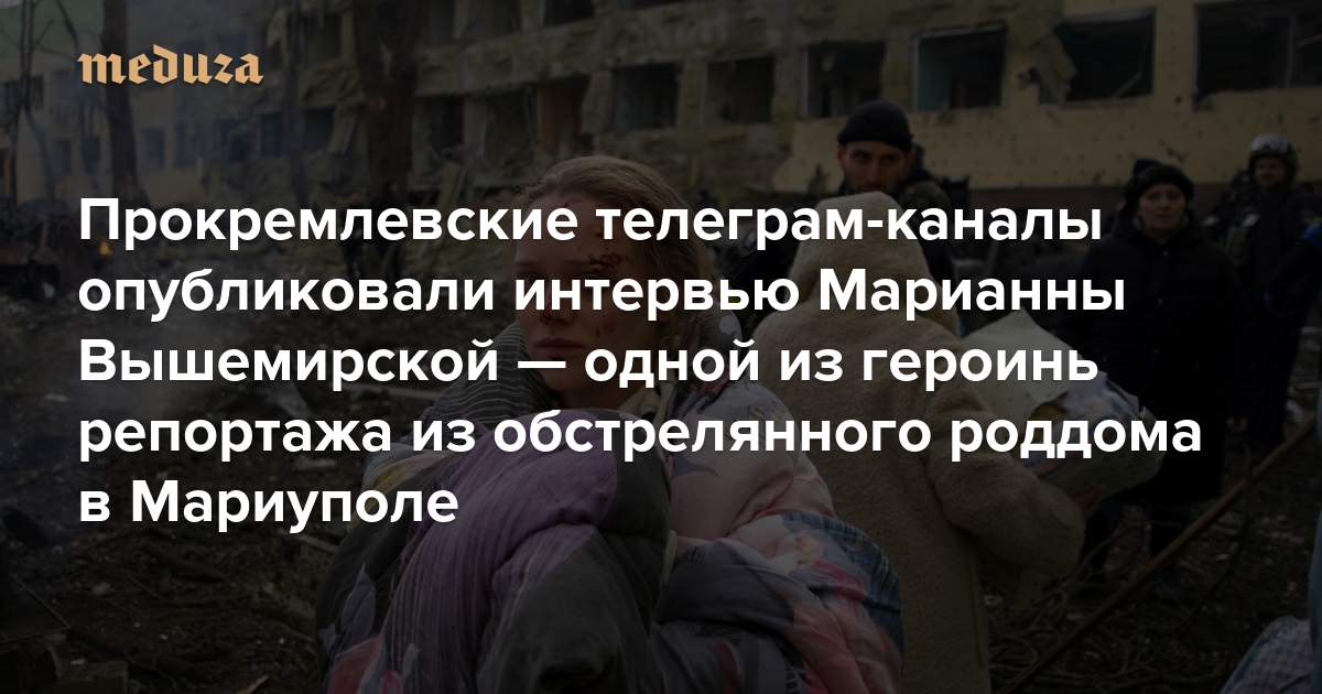 В российских телеграм-каналах появилось семиминутное видеоинтервью Марианны Вышемирской. Это одна из женщин, которая находилась в роддоме Мариуполя во время обстрела 9 марта, она стала героиней резонансного репортажа Associated Press. Видео, как обратила внимание «Медиазона», в частности, опубликовали «ЧВК Медиа» и другие каналы, поддерживающие российское вторжение в Украину. В этих публикациях слова Вышемирской подаются как подтверждение версии властей России о том, что по роддому якобы «ударили Вооруженные силы Украины» (ВСУ) и «украинские боевики». При этом сама девушка в действительности этого не утверждает — по крайней мере, в опубликованных видео.