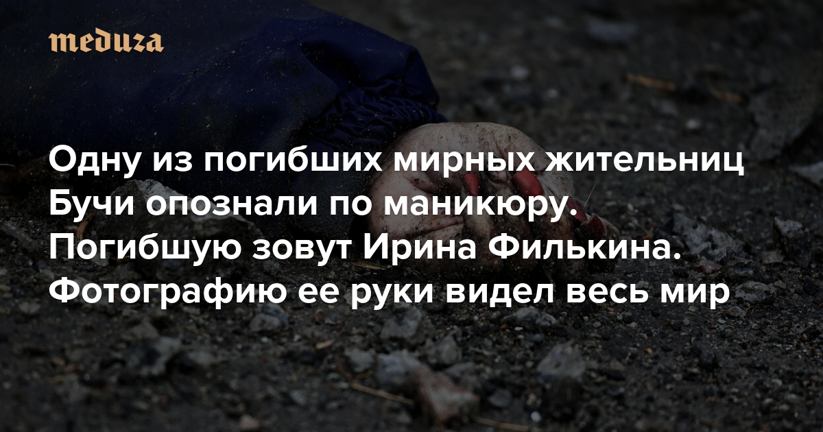 Одну из погибших мирных жительниц Бучи опознали по маникюру Погибшую зовут Ирина Филькина. Фотографию ее руки видел весь мир
