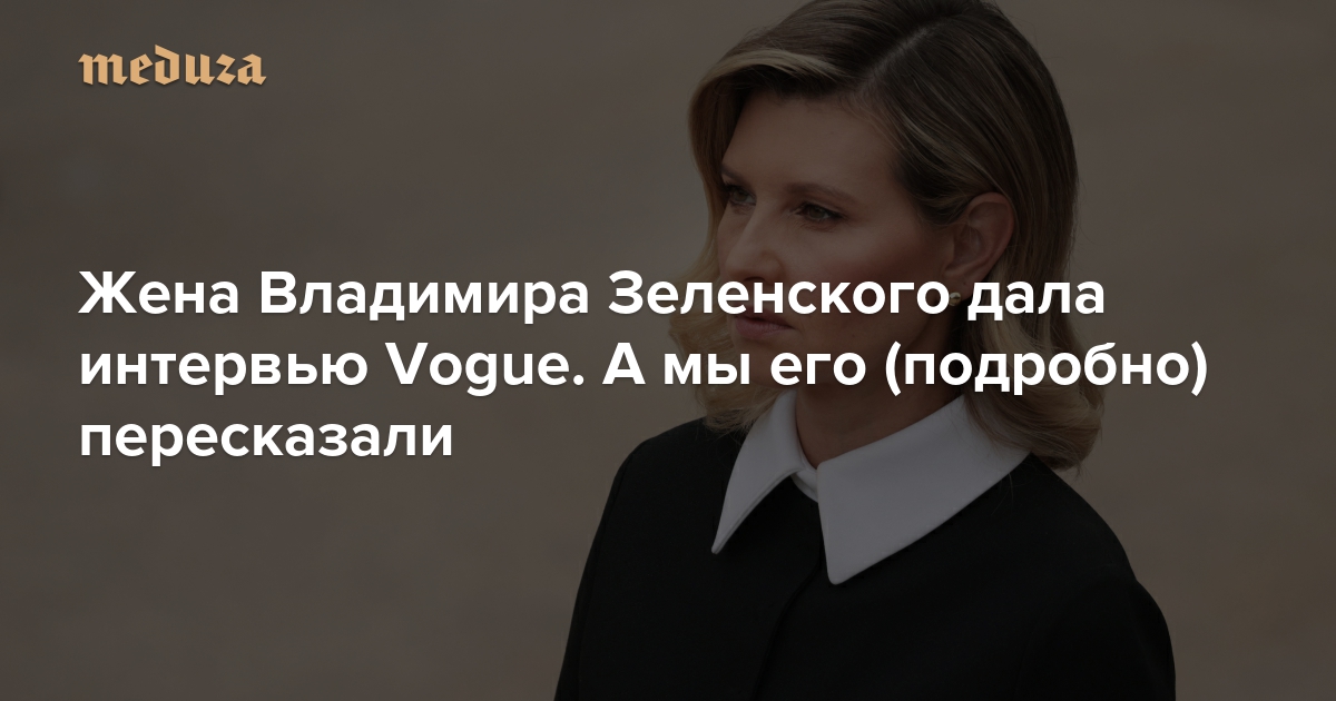 Первая леди Украины Елена Зеленская дала интервью корреспонденту британского журнала Vogue. В нем она вспоминает, что делала в начале войны, рассказывает, как украинские города переживают блокаду, и призывает закрыть небо над Украиной. «Медуза» подробно пересказывает это интервью.