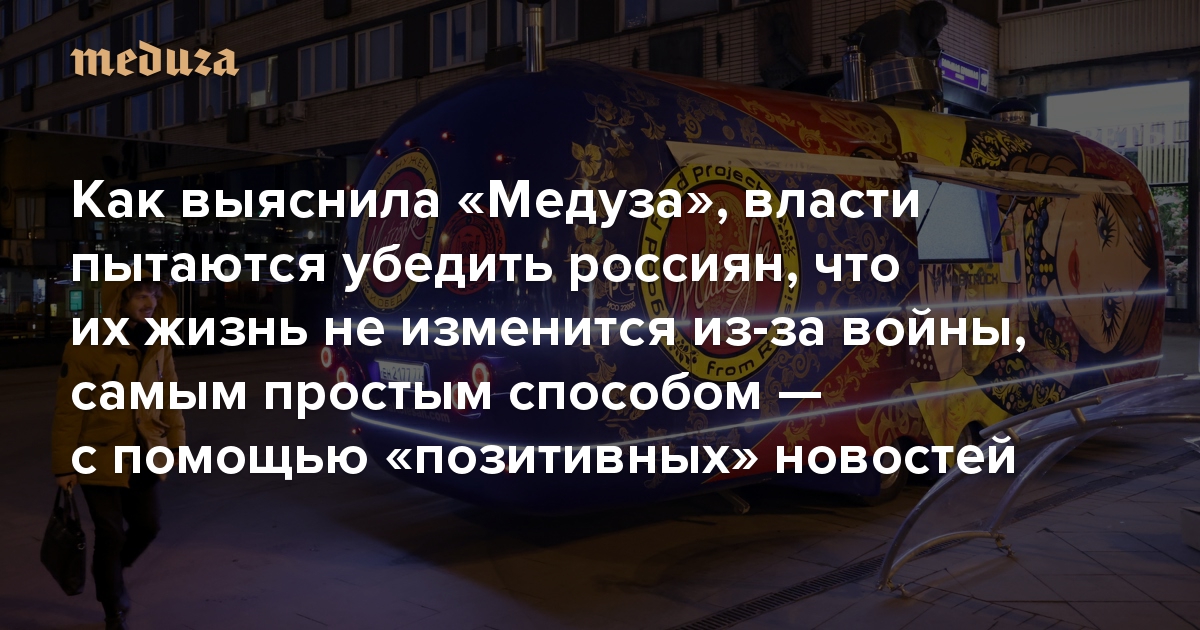 «Идет разгон позитива» Как выяснила «Медуза», власти пытаются убедить россиян, что их жизнь не изменится из-за войны, самым простым способом — с помощью «позитивных» новостей