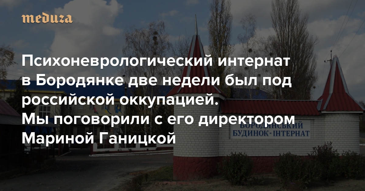 Бородянка — небольшой поселок под Киевом, совсем недалеко от Бучи. Он также с первых дней войны попал под оккупацию российскими военными, которые покинули его только в начале апреля. Захвачен тогда оказался и местный психоневрологический интернат — туда вошли солдаты из Чечни. Его директор Марина Ганицкая рассказала «Медузе», как интернат выживал все это время.