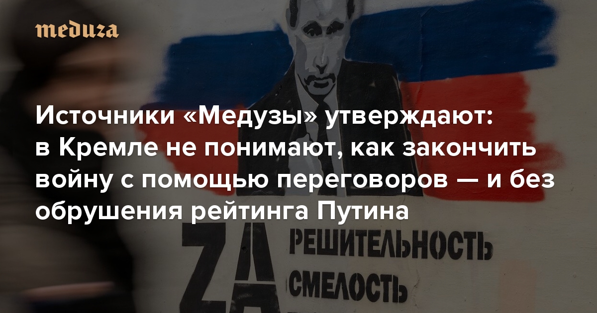 Источники «Медузы» утверждают: в Кремле не понимают, как закончить войну с помощью переговоров — и без обрушения рейтинга Путина Там жалуются, что пропаганда «переборщила с нагнетанием темы нацизма»