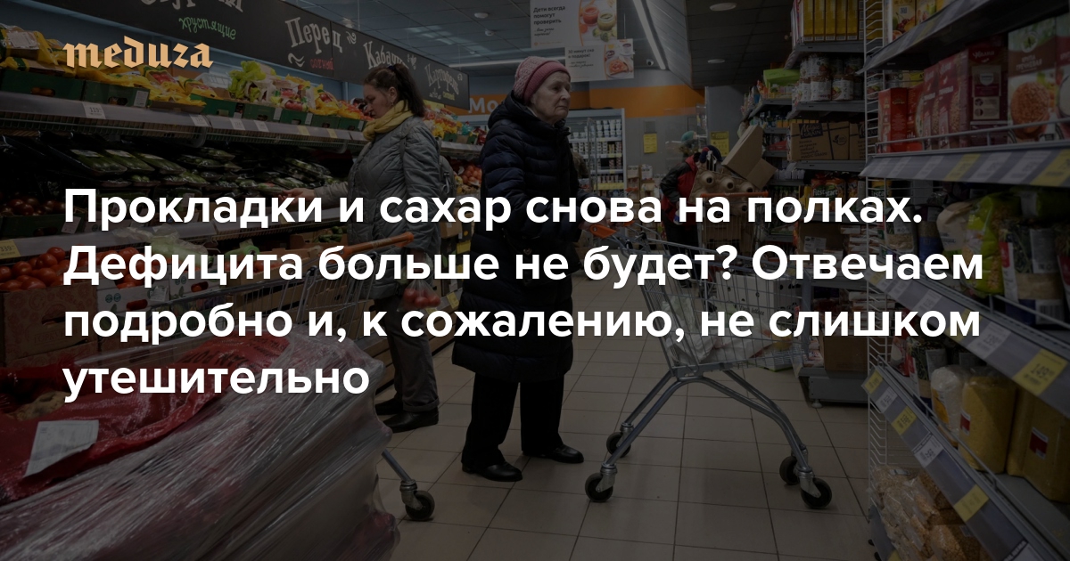 Прокладки и сахар снова на полках. Дефицита больше не будет? Отвечаем подробно и, к сожалению, не слишком утешительно. А еще советуем, что закупить впрок