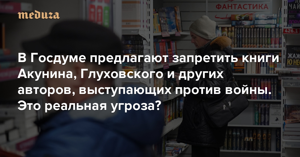 «Отцензурировать нас нельзя, можно только закрыть» В Госдуме предлагают запретить книги Акунина, Глуховского и других авторов, выступающих против войны. Это реальная угроза?