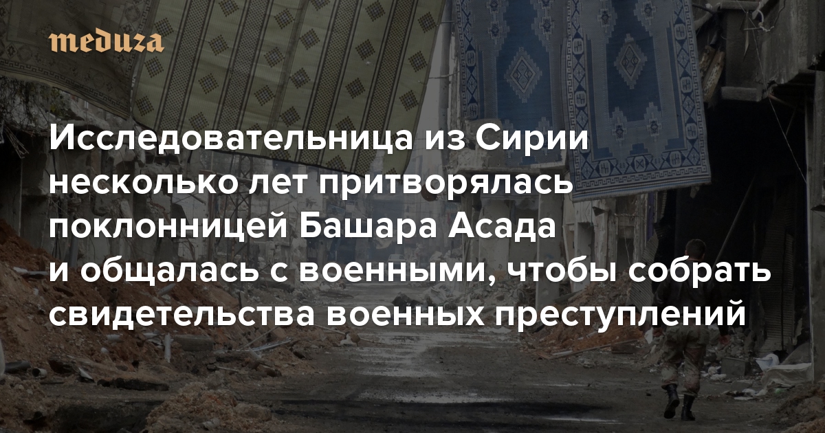 Исследовательница из Сирии несколько лет притворялась поклонницей Башара Асада и общалась с военными, чтобы собрать свидетельства военных преступлений Пересказ материала The Guardian