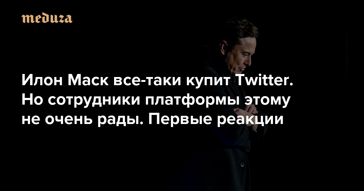 Двадцать пятого апреля Илон Маск договорился с советом директоров Twitter о покупке компании за 44 миллиарда долларов — по 54,2 доллара за акцию. Предприниматель пообещал превратить соцсеть в «оплот свободы слова» и «сделать Twitter лучше, чем когда-либо». Сперва сделка была под вопросом — совет директоров пытался ее заблокировать, но под давлением акционеров пошел навстречу миллиардеру. Двадцать пятого апреля компания выпустила пресс-релиз, в котором объявила, что заключила соглашение. «Медуза» собрала первые реакции на сделку со стороны сотрудников и пользователей платформы.