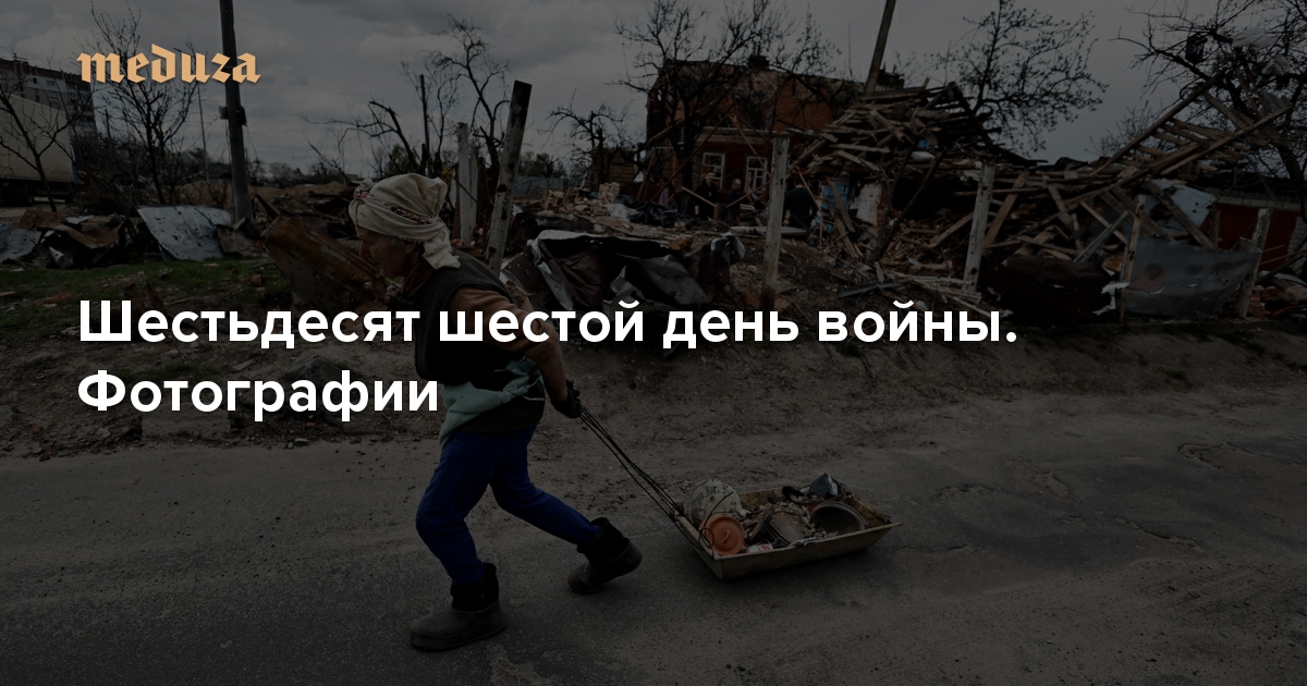 30 апреля, в шестьдесят шестой день войны, государственные новостные агентства ТАСС и РИА Новости сообщили, что с территории завода «Азовсталь» в Мариуполе, осаждаемого российской армией, вышли 25 мирных жителей. Полк «Азов», который держит оборону на «Азовстали», заявил, что оттуда удалось эвакуировать еще 20 гражданских. В тот же день Владимир Путин подписал указ о единовременной выплате ветеранам Великой Отечественной войны, которые живут в ДНР, ЛНР и «на освобожденных территориях Украины», 10 тысяч рублей. В каких границах находятся эти территории, не сообщается. Полиция Киевской области сообщила об обнаружении нового захоронения вблизи Бучи. СМИ узнали, что папа римский Франциск трижды просил Владимира Путина организовать гуманитарный коридор для эвакуации мирных жителей Мариуполя. Все три раза он получил отказ. «Медуза» показывает главные фотографии этого дня.