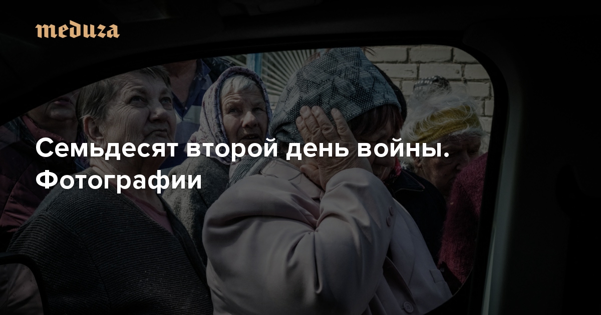 На семьдесят второй день войны Генштаб ВСУ объявил, что украинским военным удалось вернуть контроль над пятью населенными пунктами в Харьковской области. В Украине сообщили о пожаре на российском фрегате у острова Змеиный (депутат Рады Алексей Гончаренко утверждает, что корабль подбили ракетами «Нептун»). С территории завода «Азовсталь», где укрывались жители Мариуполя, удалось эвакуировать 50 человек. «Медуза» собрала главные фотографии этого дня войны.