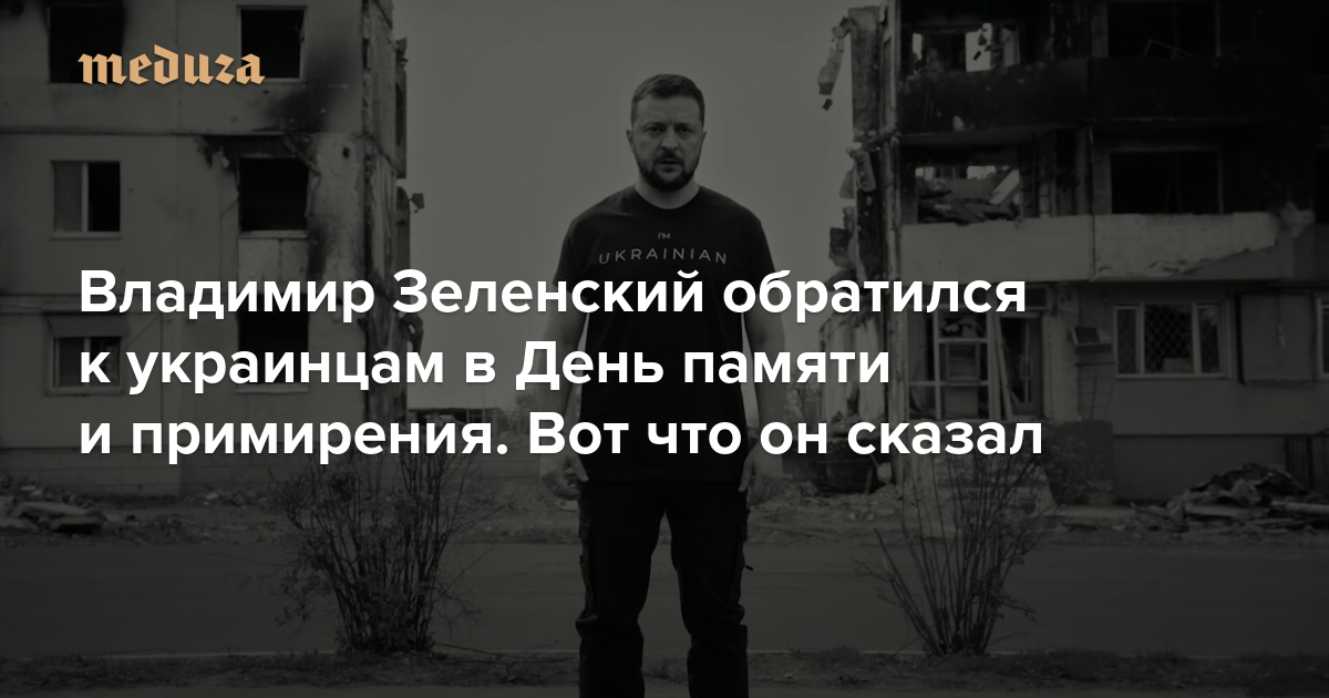 Президент Украины Владимир Зеленский опубликовал видеообращение к украинцам в честь Дня памяти и примирения. На фоне девятиэтажки в Бородянке (город в Киевской области), разрушенной российскими обстрелами, Зеленский произнес речь, в которой сравнил российское военное вторжение в Украину с действиями нацистской Германии на территории Европы во время Второй мировой войны. В речи Зеленского отмечается, что новая война началась вопреки словам «Никогда снова». «Медуза» публикует эту речь без сокращений.
