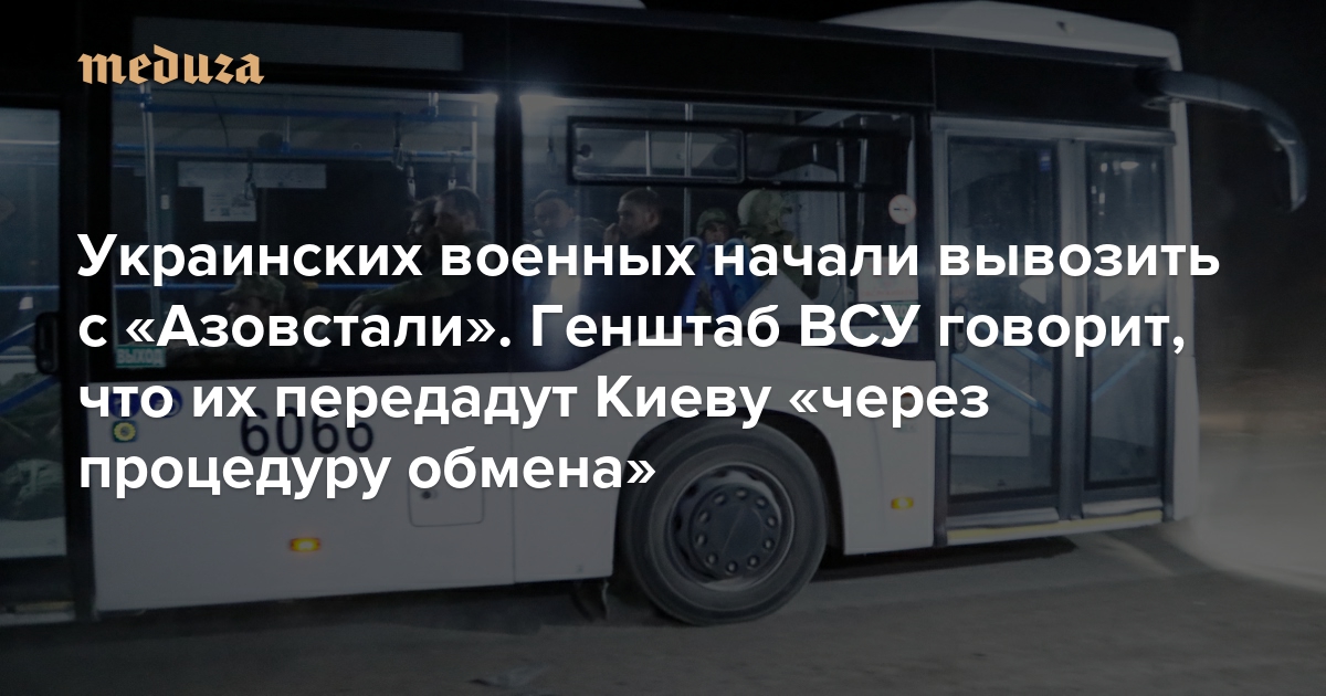 Украинских военных начали вывозить с «Азовстали». Генштаб ВСУ говорит, что их передадут Киеву «через процедуру обмена» Россия это пока не подтвердила