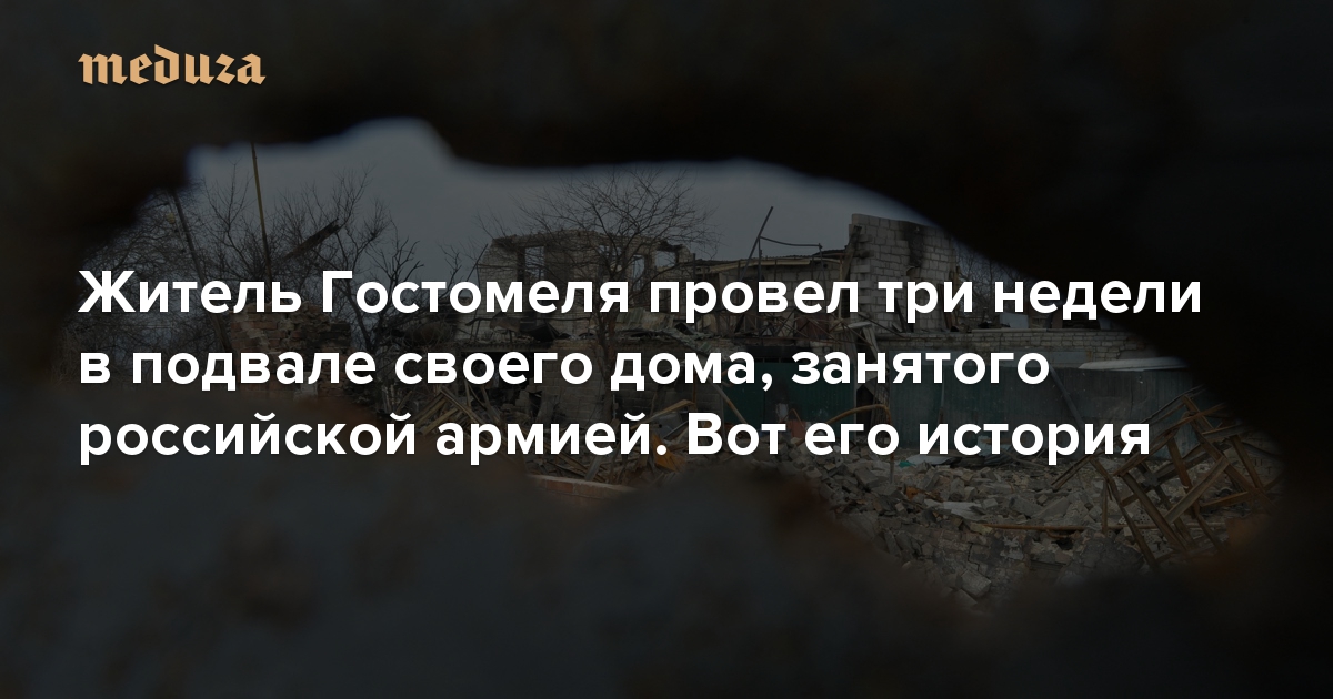 Богдан — сотрудник аэродромной службы Гостомельского аэропорта, за который шли жесткие бои в самом начале войны. Три недели он вместе с семьей и соседями провел в подвале своего дома прямо напротив захваченного аэропорта. Дом попадал под обстрелы, его занимал то чеченский ОМОН, то омский десант, а в середине марта всех жителей насильно вывезли в Беларусь. «Медуза» публикует воспоминания Богдана об оккупации.