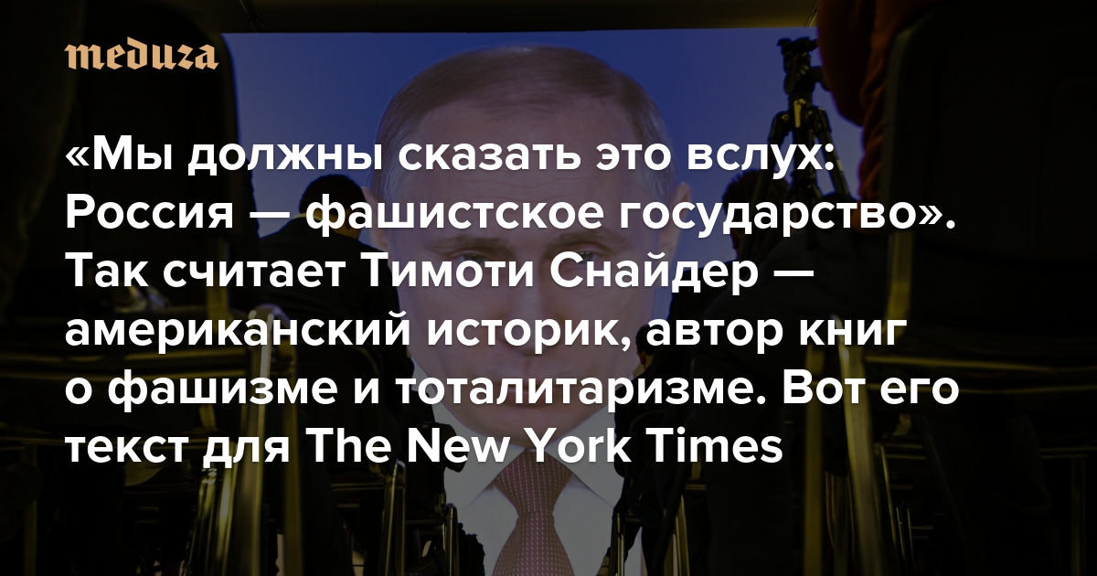 «Мы должны сказать это вслух: Россия — фашистское государство» Так считает Тимоти Снайдер — американский историк, автор книг о фашизме и тоталитаризме. Вот его текст для The New York Times