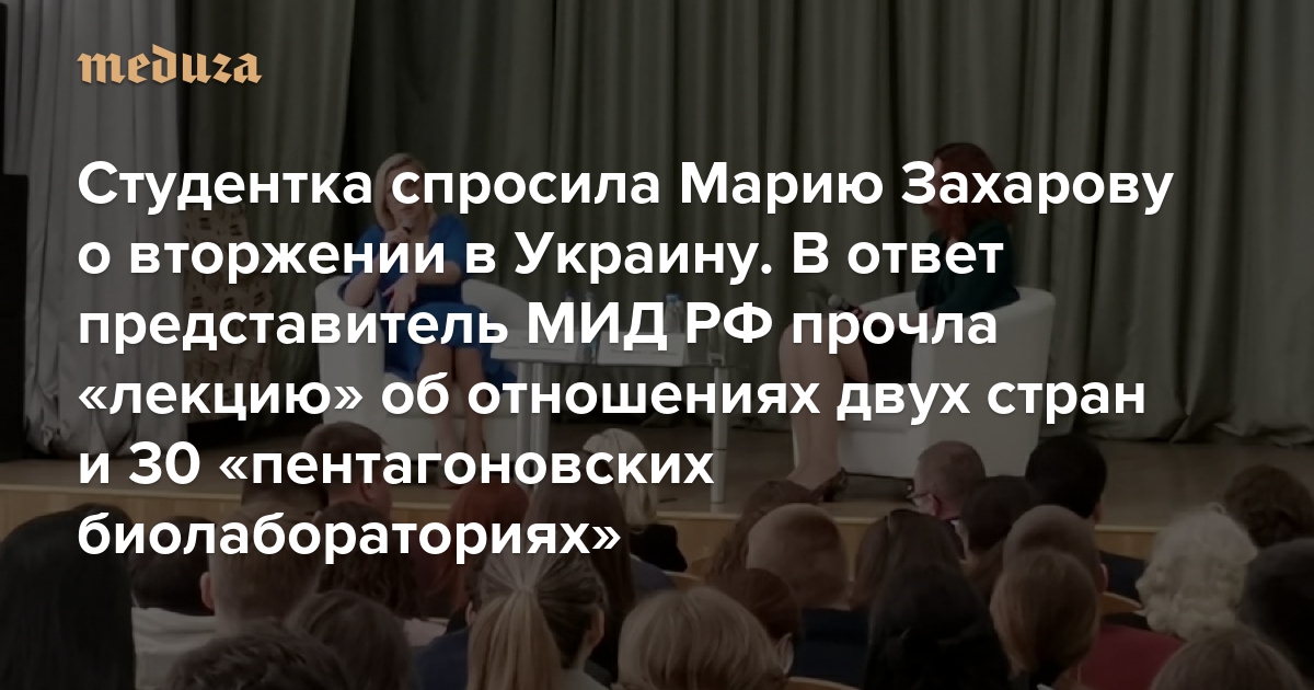 «Восемь лет мы бегали за ними, а они только глумились» Студентка спросила Марию Захарову о вторжении в Украину. В ответ представитель МИД РФ прочла «лекцию» об отношениях двух стран и 30 «пентагоновских биолабораториях»