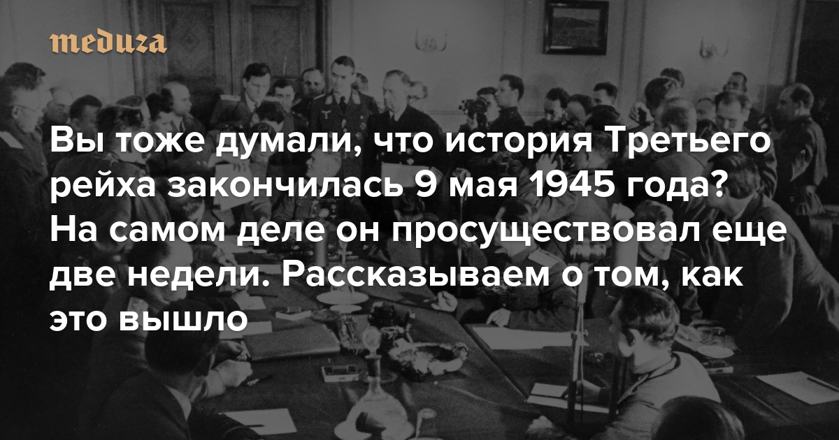 Вы тоже думали, что история Третьего рейха закончилась 9 мая 1945 года? На самом деле он просуществовал еще две недели «Медуза» рассказывает о последнем нацистском правительстве