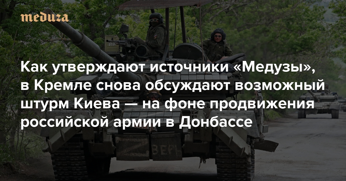 Как утверждают источники «Медузы», в Кремле снова обсуждают возможный штурм Киева — на фоне продвижения российской армии в Донбассе Теперь Москва надеется победить «к осени»