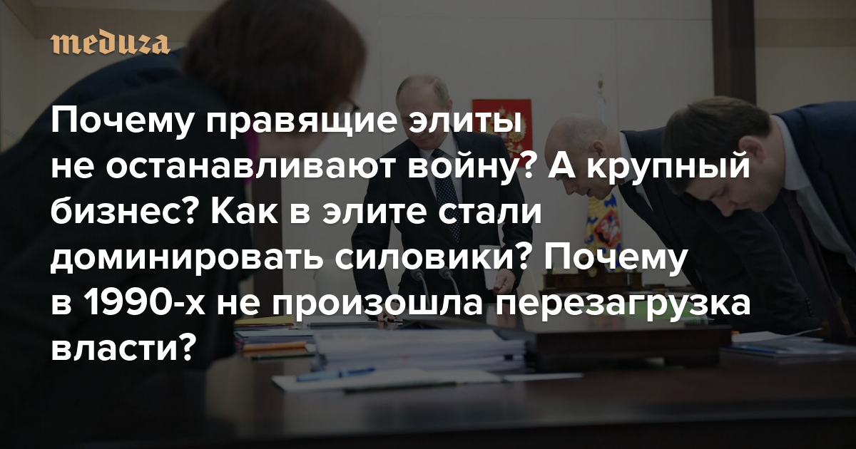 Почему правящие элиты не останавливают войну? А крупный бизнес? Как в элите стали доминировать силовики? Почему в 1990-х не произошла перезагрузка власти? Объясняет (очень подробно!) экономист Андрей Яковлев