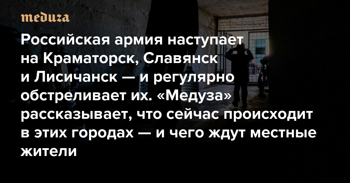 «Люди готовят на кострах. Выживают как могут» Российская армия наступает на Краматорск, Славянск и Лисичанск — и регулярно обстреливает их. «Медуза» рассказывает, что сейчас происходит в этих городах — и чего ждут местные жители