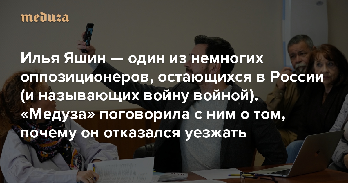 «Все уже случилось. Одного моего друга убили. Другого — отравили и посадили» Илья Яшин — один из немногих оппозиционеров, остающихся в России (и называющих войну войной). «Медуза» поговорила с ним о том, почему он отказался уезжать
