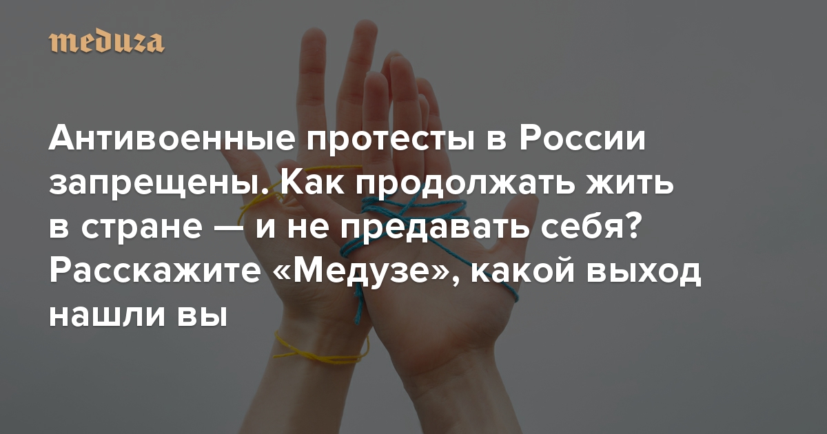 Антивоенные протесты в России запрещены. Как продолжать жить в стране — и не предавать себя? Расскажите «Медузе», какой выход нашли вы