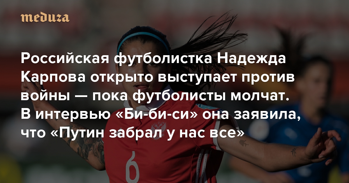 Российская футболистка Надежда Карпова открыто выступает против войны — пока футболисты молчат В интервью «Би-би-си» она заявила, что «Путин забрал у нас все»