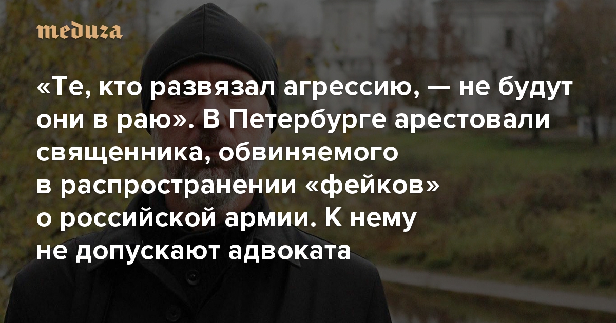 «Те, кто развязал агрессию, — не будут они в раю» В Петербурге арестовали священника, обвиняемого в распространении «фейков» о российской армии. К нему не допускают адвоката