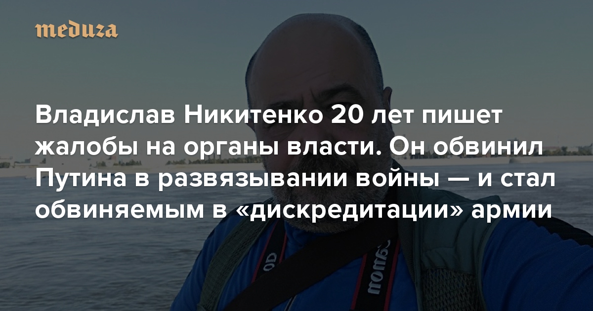 «Россия — это тюрьма самого паршивого класса» Владислав Никитенко 20 лет пишет жалобы на органы власти. Он обвинил Путина в развязывании войны — и стал обвиняемым в «дискредитации» армии