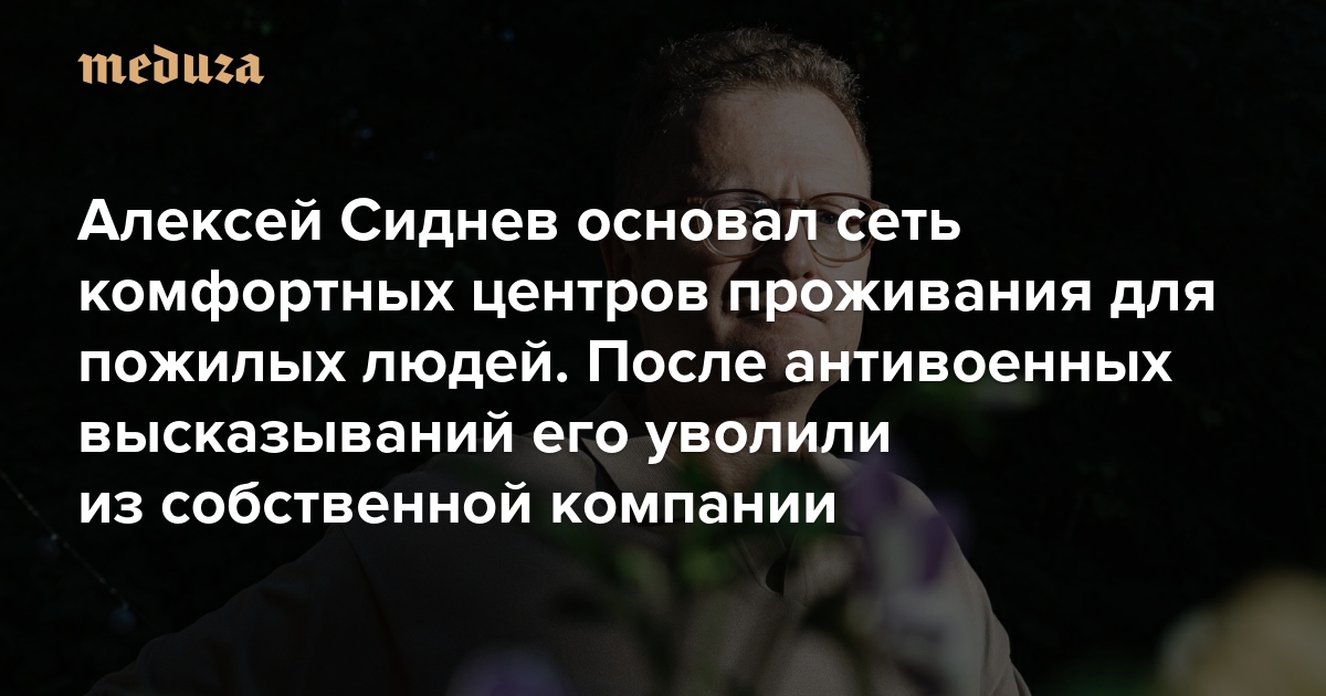 «Если государство не щадит молодых ребят, то зачем беспокоиться о стариках?» Алексей Сиднев основал сеть комфортных центров проживания для пожилых людей. После антивоенных высказываний его уволили из собственной компании