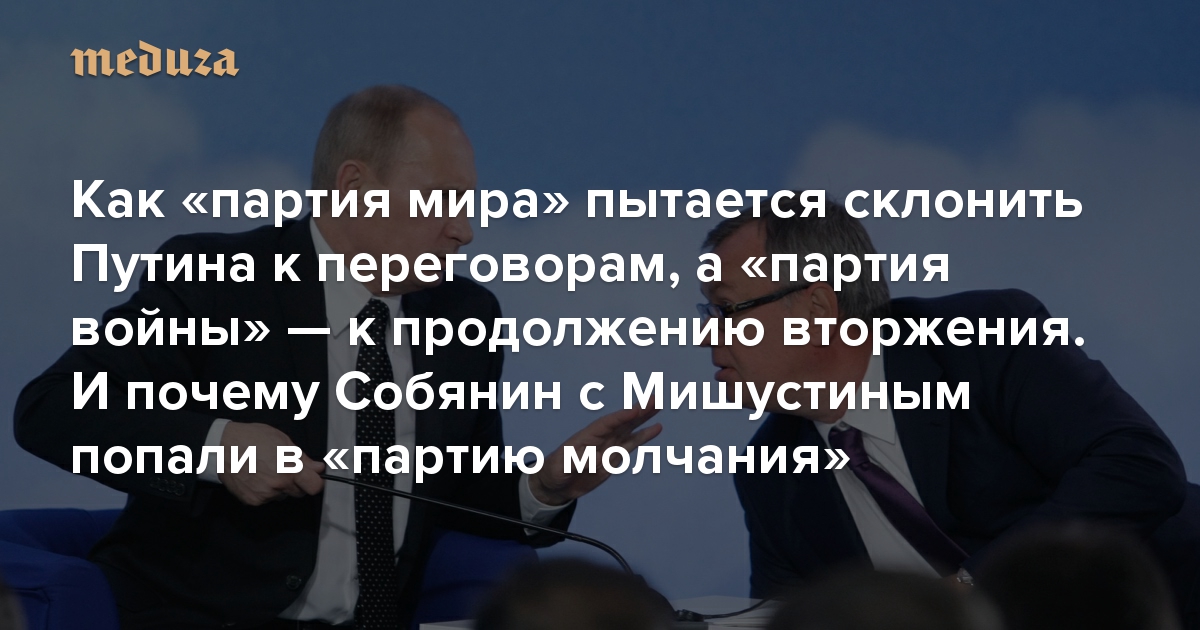 Как «партия мира» пытается склонить Путина к переговорам, а «партия войны» — к продолжению вторжения. И почему Собянин с Мишустиным попали в «партию молчания» Рассказывает Андрей Перцев