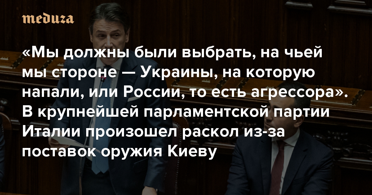 «Мы должны были выбрать, на чьей мы стороне — Украины, на которую напали, или России, то есть агрессора» В крупнейшей парламентской партии Италии произошел раскол из-за поставок оружия Киеву