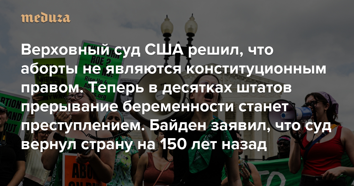 Верховный суд США решил, что аборты не являются конституционным правом. Теперь в десятках штатов прерывание беременности станет преступлением Байден заявил, что суд вернул страну на 150 лет назад
