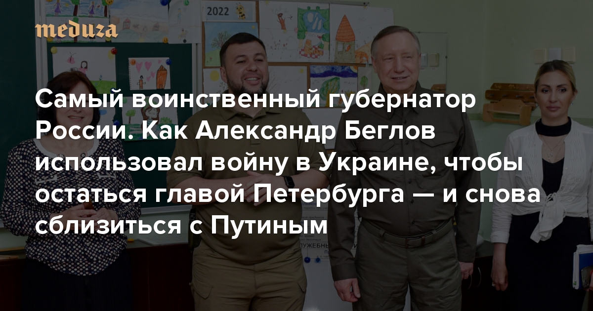 Он добавил, что Беглов, очевидно, понимает, что среди чиновников немало желающих занять пост губернатора Петербурга, — и не дает им повода упрекнуть себя в недостаточной поддержке войны. Политолог Александр Кынев в разговоре с «Медузой» лаконично назвал это «проявлением бюрократического чутья» и «умением выживать внутри системы». Три источника, близких к АП, заверили, что благодаря этому умению Беглов «будет управлять» Петербургом как минимум в ближайшем будущем.