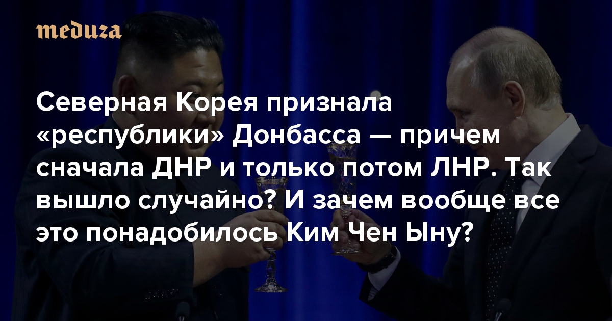 Многие обратили внимание на то, что между официальным признанием ДНР и ЛНР прошло некоторое время. Это породило волну шуток (смешная, очень смешная, тоже неплохая, и вот еще одна) и в целом оставило наблюдателей в недоумении: получается, с точки зрения Пхеньяна, глава ДНР Денис Пушилин легитимен, а глава ЛНР Леонид Пасечник — нет?