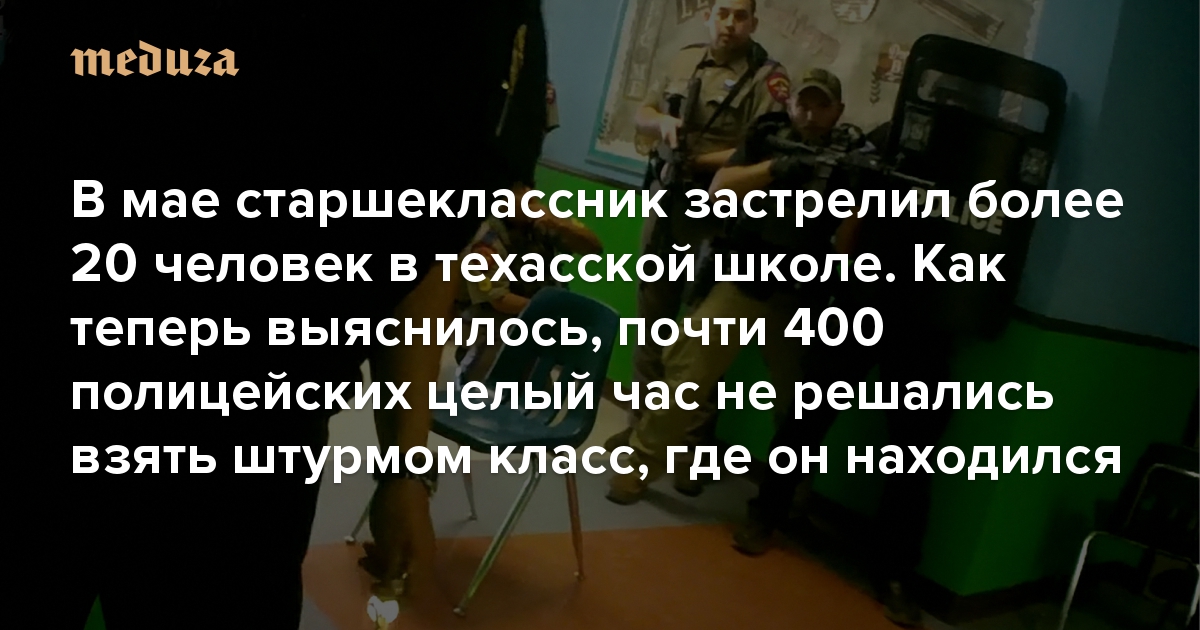 В мае старшеклассник застрелил более 20 человек в техасской школе. Как теперь выяснилось, почти 400 полицейских целый час не решались взять штурмом класс, где он находился. Ими никто не командовал