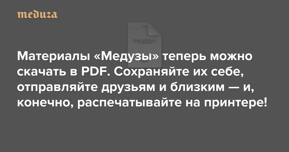 Теперь материалы «Медузы» можно скачать в формате PDF. Чтобы пересылать их близким и друзьям — или просто распечатывать